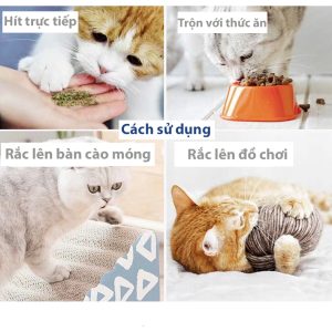 Bạn chỉ cần lấy một lượng nhỏ cỏ khô. Rắc chúng lên những nơi mèo thường nằm chơi. Mỗi tuần nên sử dụng từ 2 đến 3 lần. Sản phẩm không gây hại cho sức khỏe vật nuôi. Mèo sẽ tự cân bằng cảm xúc sau khi sử dụng.